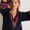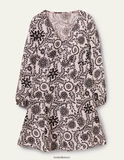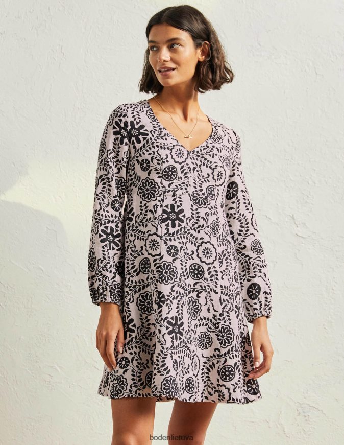 ši glostanti suknelė V formos iškirpte palengvina kasdienį apsirengimą. plūduriuojantis sijonas iki kelių ir ilgos palaidinės rankovės suteikia šiam lino mini moteriškumo. jis yra pusiau aptemptos formos su imperine juosmens linija ir yra užbaigtas praktiškomis šoninėmis kišenėmis. jei nepastebėjote, smiginis priekyje suteikia papildomos formos.
