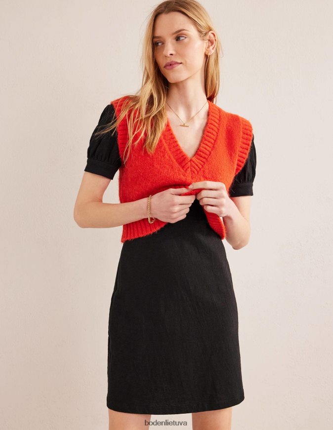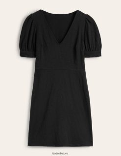 Ši medvilninio trikotažo mini suknelė yra universali puošniai arba apačiam. pademonstruokite pūstas rankoves sluoksniuodami jas po megztu tanku.