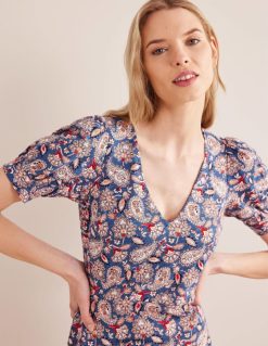 apranga lt Boden moterys V formos iškirptės džersio mini suknelė Navy & Paisley terasa 284XZZ1076
