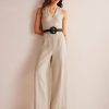 šis lininis kombinezonas yra gražiai pritaikytas taip, kad įrėmintų viršutinę kūno dalį prieš įgaunant plačių kojų formą – tai elegantiškas pasirinkimas kitame renginyje . tiesiog pridėkite kulnus ir pirmyn.