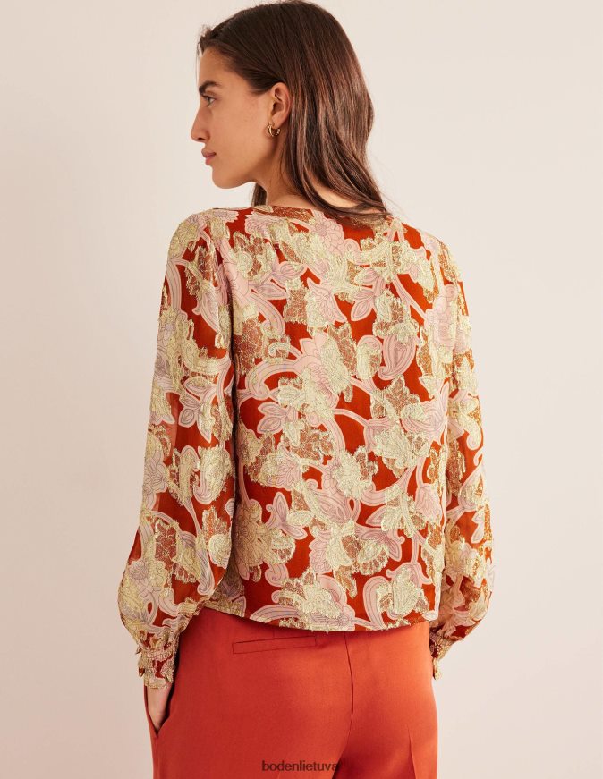 Gražus gėlių raštas ant šio žakardo viršaus yra paremtas blizgančiais metaliniais siūlais. nuo stambių rankogalių ir gilaus V formos kaklo iki laisvo kirpimo – tai lengvas pasirinkimas bet kokiai progai.