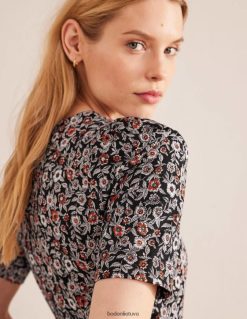 apranga lt Boden moterys zoe trikotažinė suknelė juoda ir našlaičių žydėjimas 284XZZ1071