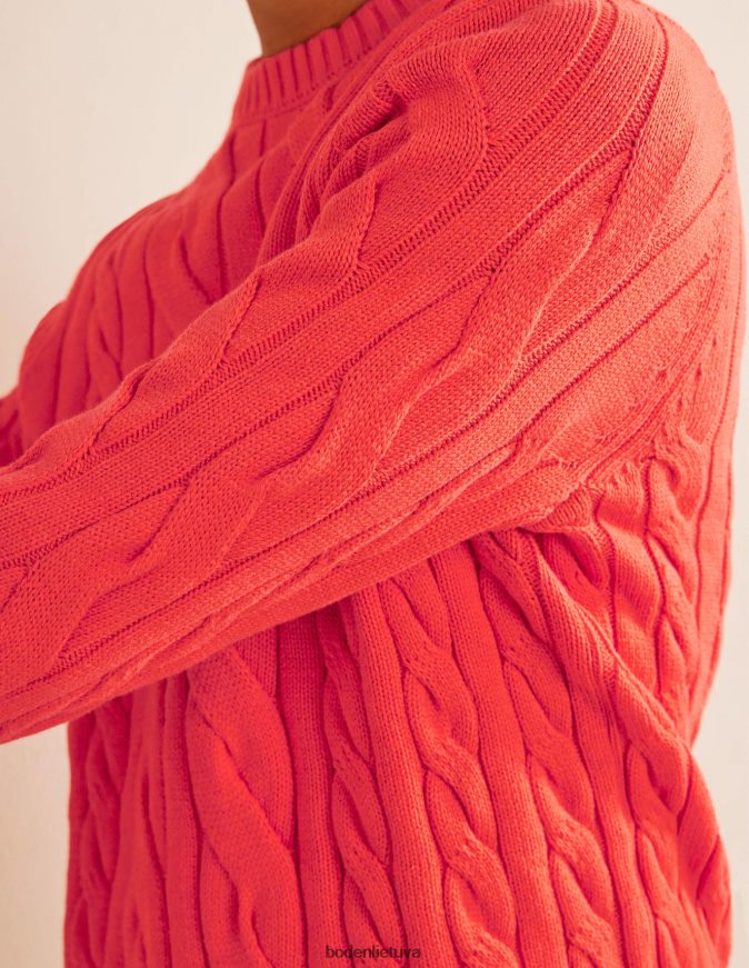 Austas iš medvilnės storu, kabeliu megztu raštu, šis džemperis su įtemptu kaklu suteiks kiekvieno įvaizdžio patrauklumo. sluoksniuokite aukštyn arba žemyn, kad atitiktų sezoną.