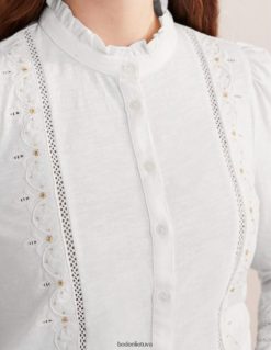 apranga lt Boden moterys Broderie lininis viršus su kaklaraiščiu baltas 284XZZ105