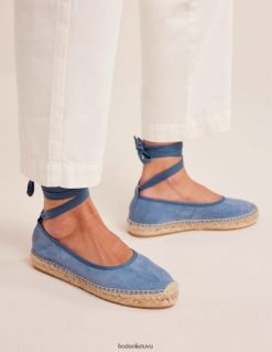 Šie espadrilės bateliai surišami aplink kulkšnį gražiais kaspinėliais ir yra apvalios, baleto įkvėptos formos. pademonstruokite juos apkarpytomis kraštinėmis.