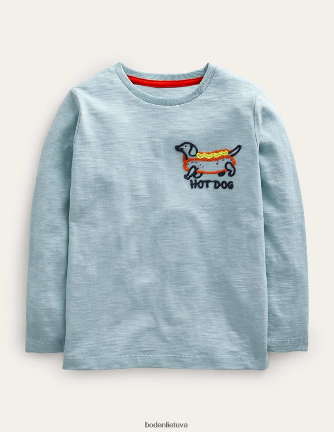 Šios minkštos medvilnės ilgomis rankovėmis linksmybės suteikia išsiuvinėtas „dešrainis“. būtinai vaikščiokite juo kasdien.