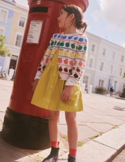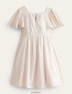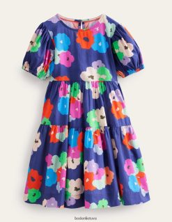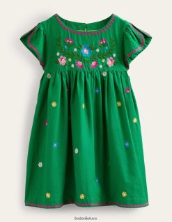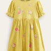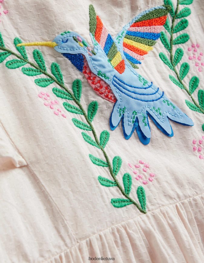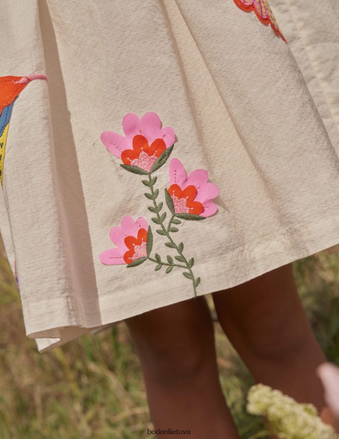 spalvingi aplikacijų raštai, puošiantys šią suknelę, pasakoja žavią istoriją. jis pagamintas iš medvilnės iki laisvo kirpimo su plazdančiomis rankovėmis ir sulenktu sijonu.
