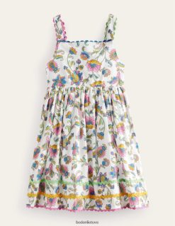 Smocking, vasariški raštai, ric-rac detalės, didelis lankas ant nugaros. ši suknelė yra odė praeitam laikui.