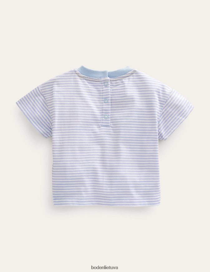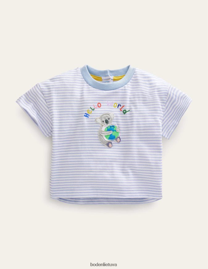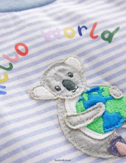 Šis spausdintas medvilninis marškinėliai yra mielas pretendentas į pirmąsias fotografavimo galimybes, priekyje su užrašu „labas pasaulis“.