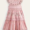 dabar čia yra kasdienė suknelė, kuri yra tiek praktiška, tiek linksma. padarėme jį iš medvilnės, kad būtų pralaidumas orui, o žaismingos detalės yra siuvinėti ties pečiais.