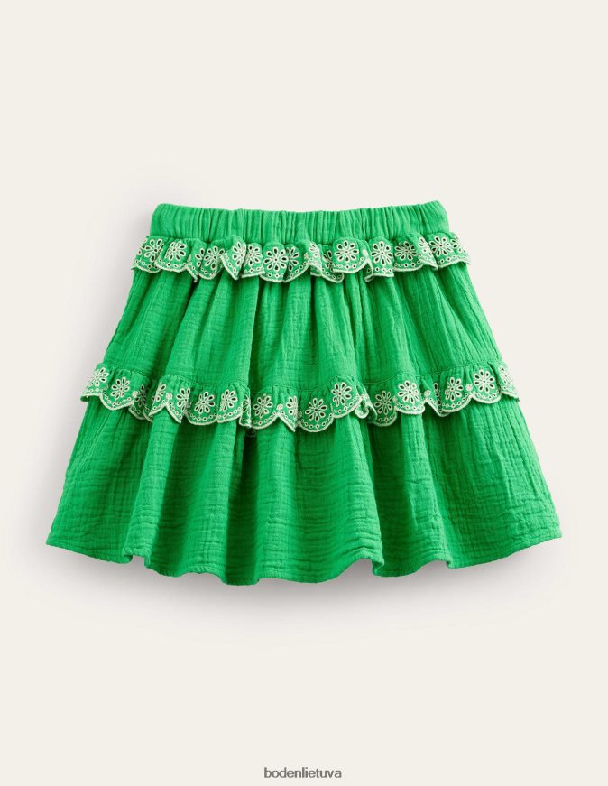 dvi pakopos = dvigubai smagiau su šiuo medvilniniu sijonu. karpytos apvados yra išsiuvinėtos ramunėlėmis, kad jaustųsi vasariškas.