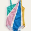 Pajūrio nuotykių ieškotojai žino, kaip stilingai statyti smėlio pilis: šis tiulio puoštas maudymosi kostiumėlis. su kontrastingomis raukinių apdaila, rinkitės iš dviejų ryškių blokelių spalvų.