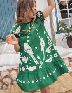 mūsų suknelėje trumpomis rankovėmis yra viskas, ko reikia mini gamtos mylėtojams, norint nugabenti juos į įsivaizduojamą atogrąžų mišką. tropinių paukščių siuvinėjimas varnele. šaunus medvilninis audinys varnele. slaptos šoninės kišenės brangiems radiniams laikyti varnele. pūstos rankovės ir raukiniai prie apačios suteikia tradicinį pojūtį. plius – už papildomus komforto taškus – pridėjome tamprią iškirptę ir rankogalius.