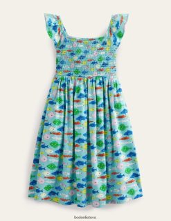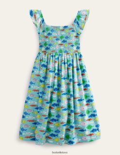 apranga lt Boden mergaites shirred jersey midi suknelė aqua jūros mėlyna žuvis 284XZZ3040