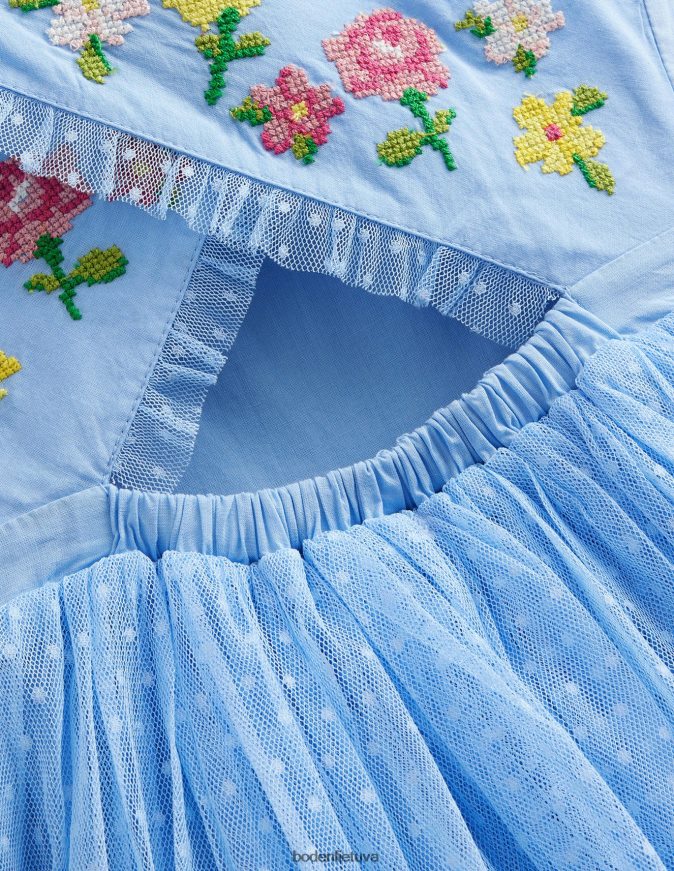 dėl sudėtingų siuvinėjimų, kryžminių detalių ir pilno tiulio sijono (sukurto specialiai sukimuisi), ši suknelė skirta ypatingai progomis.