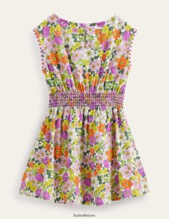 su aptemptu juosmeniu ir pom pom apdaila – ši medvilninė suknelė suteikia visą malonumą. jis pagamintas su apvalia iškirpte ir švelniais susitraukimais ties juosmeniu – tobulas erdvus atostogų stilius.