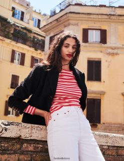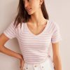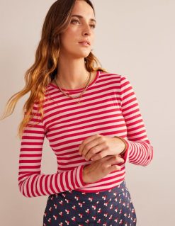 apranga lt Boden moterys Anna rib crew marškinėliai persikų odos ir aitriosios paprikos juostelė 284XZZ194