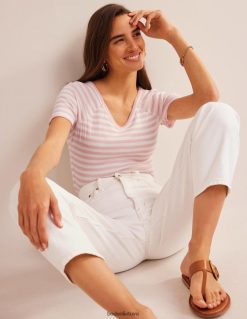 apranga lt Boden moterys Anna rib marškinėliai su V formos iškirpte dramblio kaulo ir persiko odos juostelė 284XZZ195