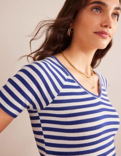 Sėdi arti kūno, šis briaunotas medvilninis marškinėliai yra tobulas kasdienis sluoksnis. stilizuokite atskirai arba po švarku ar megztu.