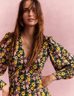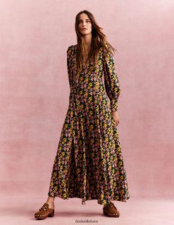 nepaprasta dėvėti ir smagiai formuoti šią skystą maksi suknelę gražiai krenta ant kūno. stori rankogaliai paryškina romantiškas palaidines rankoves, pridedant dar vieną dramos sluoksnį.