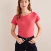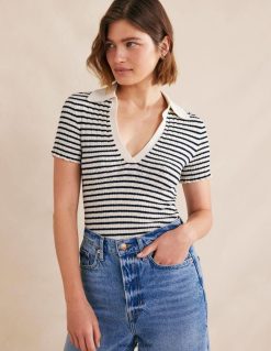 Darbo dienomis ar savaitgaliais šis pointelle megztas marškinėliai kasdienai išvaizdai suteikia subtilų apdailą. dėl V formos iškirptės taip pat lengva sluoksniuoti.