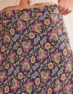 Patvirtinkite puošnumo džiaugsmą su šiuo įtempto kirpimo, skysto vidutinio dydžio sijonu, užbaigtu glostančiu vidutinio aukščio ir išskirtiniu raštu.