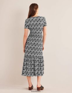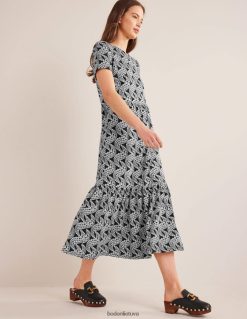 apranga lt Boden moterys daugiapakopė lengvo trikotažo midi suknelė juodas ir ramunėlių sūkurys 284XZZ1110
