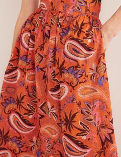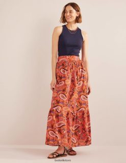 apranga lt Boden moterys daugiasluoksnis medvilninis maksi sijonas koralas ir rojus Paisley 284XZZ1231