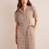 pamaininė suknelė, bet ne tokia, kokią žinote: ši suknelė yra kirpta iš patogios medvilnės ir modalo mišinio ir yra įrėminta plazdančiomis rankovėmis, kad būtų galima papildomai lėkti. o iškirptė puikiai tinka sluoksniuoti karolius.
