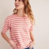apranga lt Boden moterys grynos medvilnės marškinėliai su kaklu persikų šerbetas 284XZZ1853
