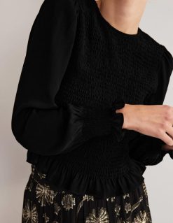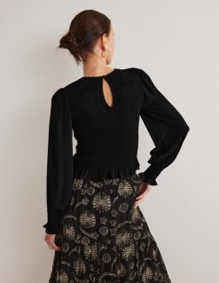 apranga lt Boden moterys įgulos kaklo smocked liemenė viršuje juodas 284XZZ1978