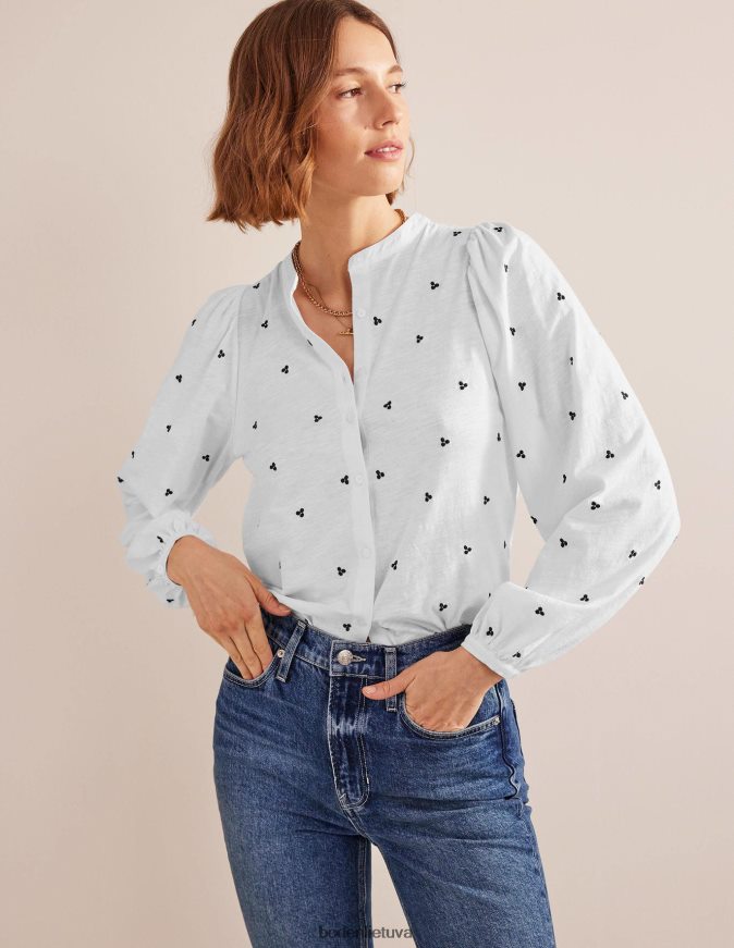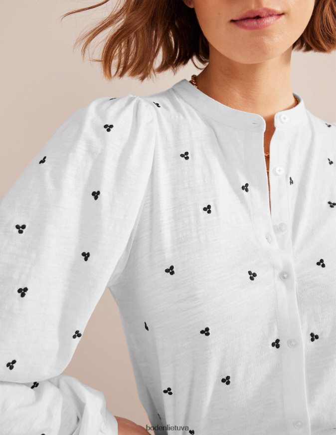 Su ilgomis palaidinės rankovėmis ir laisvu prigludimu šis siuvinėtas medvilninės spalvos viršutinis drabužis atrodo erdvus ir lengvas. Užbaikite lengvą vasarišką įvaizdį užsisegę platėjančiais džinsais ir klumpėmis.
