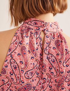 Nuo apyrankės silueto nukritęs šis skystas satino viršus gražiai dengia kūną. susikurkite savo stilių laisvai arba priglauskite prie aukšto juosmens.