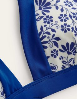 kontrastingos rašto arba bloko spalvos plokštės sukuria šio bikinio viršutinės dalies glostančias savybes. Iškirpti giliai V, kaklaraiščiai užtikrina tobulą prigludimą.