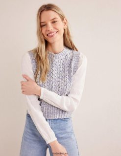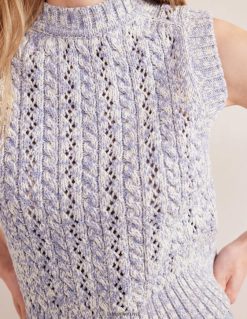 pusiau prigludusio kirpimo ir berankovio dizaino šis svarus kabeliu megztas bakas yra universalus sluoksniavimo elementas. puantelės detalės jaučiasi lengvas ir minkštas.