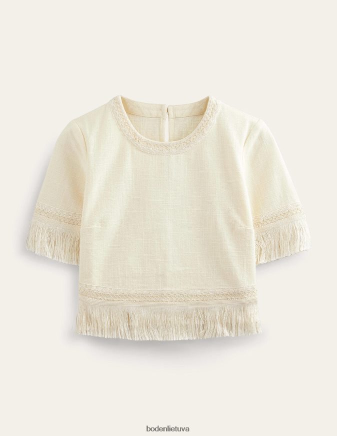 Su siuvinėtomis detalėmis ir kutais puoštais papuošimais šis medvilninis viršutinis trikotažas nepatenka į kasdienybę. dėl pusiau prigludusio kirpimo taip pat patogu.