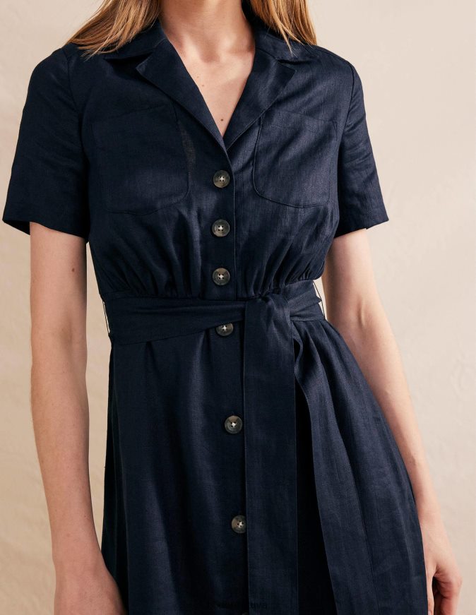 Ši lininė midi suknelė yra lengva, kvėpuojanti ir patogi visą dieną. naudokite juosmens kaklaraiščius, kad dar labiau išryškintumėte glostančią priglundančią ir besiplečiančią formą.