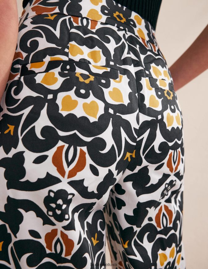 Šios sutrumpintos kelnės pasižymi plačiu raštu ir plačių kojų forma. žaiskite iki aukšto juosmens su užsegtais marškinėliais ar marškinėliais.