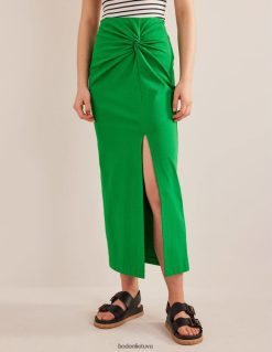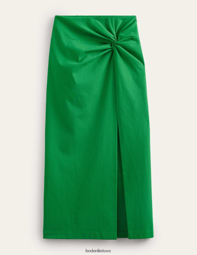 šio tamprio trikotažo midi sijono priekinė dalis surišta, sukuria raukšlėtą efektą, kuris apkabina juosmenį ir klubus. universalus kasdienis stilius, midi ilgis leidžia lengvai apsirengti.