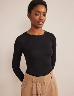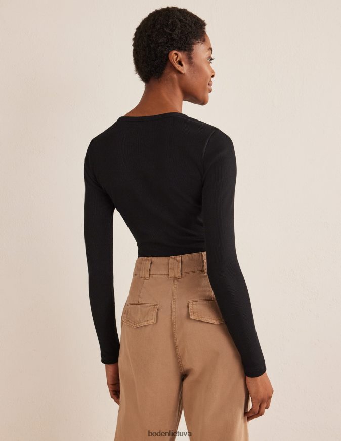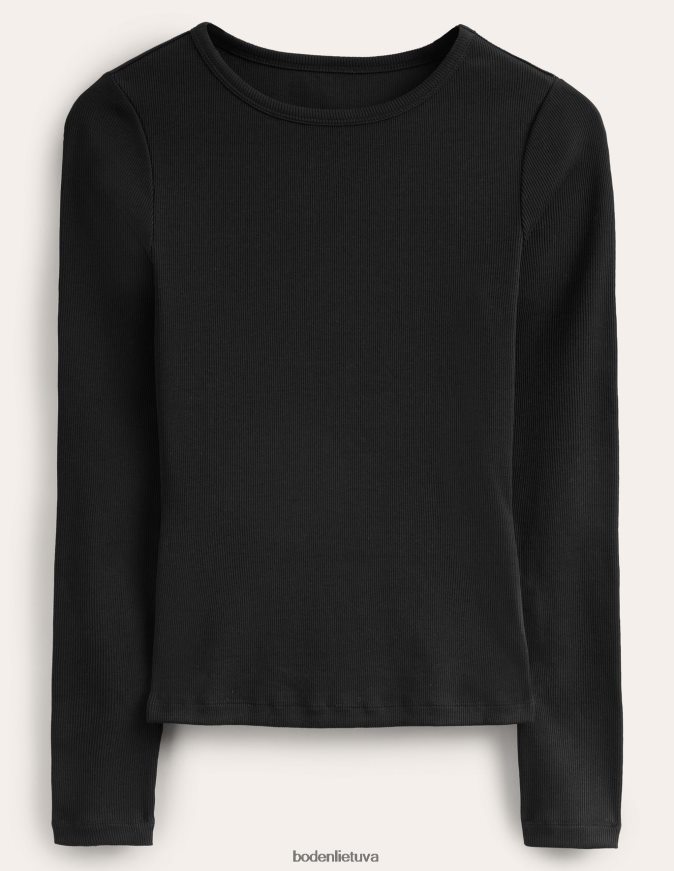 apranga lt Boden moterys medvilninis briaunotas viršus ilgomis rankovėmis juodas 284XZZ166