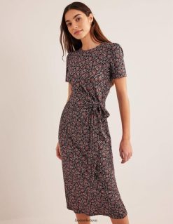 apranga lt Boden moterys megztinis priekyje megztinis midi suknelė juodas ir blokinis paisley 284XZZ971