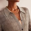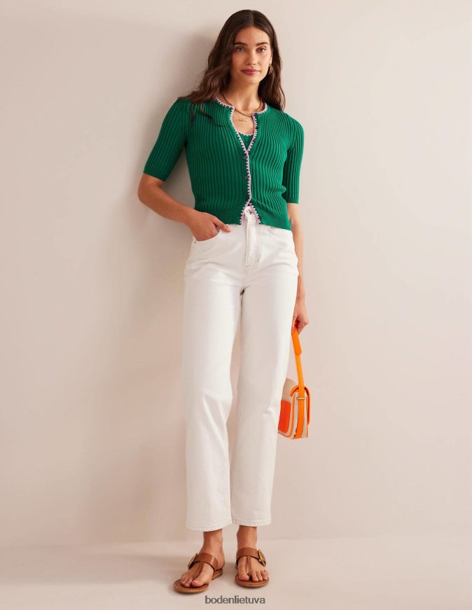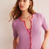 Papuoštas kontrastinga nėrimo apdaila, šis medvilninis megztinis suteikia daug tekstūros patrauklumo. briaunota apdaila subtiliai priglaudžia ir jūsų figūrą.