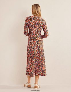 apranga lt Boden moterys Midi arbatos suknelė su įgula kaklu multi & bijūnų pop 284XZZ1370