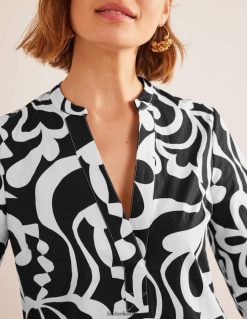 Su įpjova V formos iškirpte ir ilgomis rankovėmis nesunku pastebėti, kad ši trapi medvilninė mini suknelė perima kaftano stilių. taip pat puikiai tinka ant bikinio pakeliui į vakarienę arba su džinsine striuke ir batais kasdien.