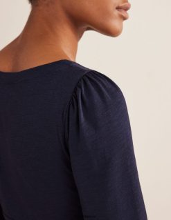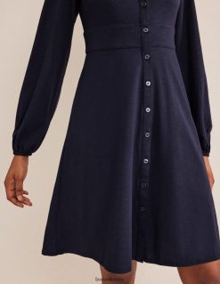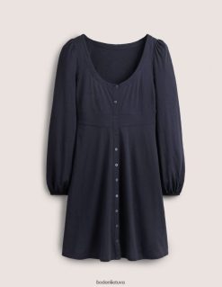 Su siauru kaklu ir palaidinėmis rankovėmis ši mini suknelė su sagomis kasdienai įvaizdžiui suteikia vintažinio žavesio.