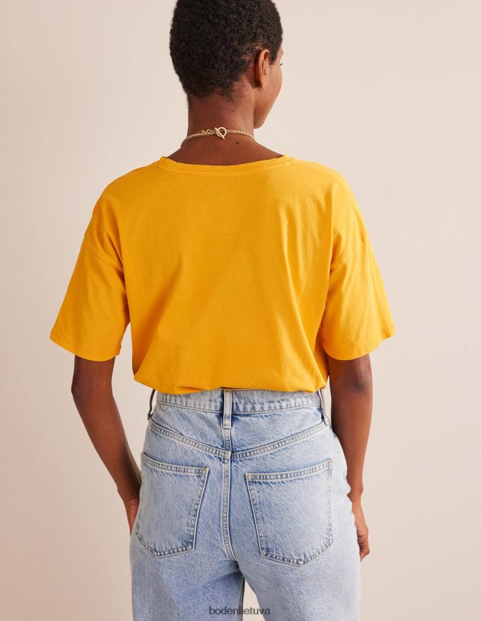 Šis medvilninis marškinėliai yra nudažyti, kad būtų švelniai išskalbtas. jis priglunda prie didelio dydžio, kurį pabrėžia nuleisti pečiai.