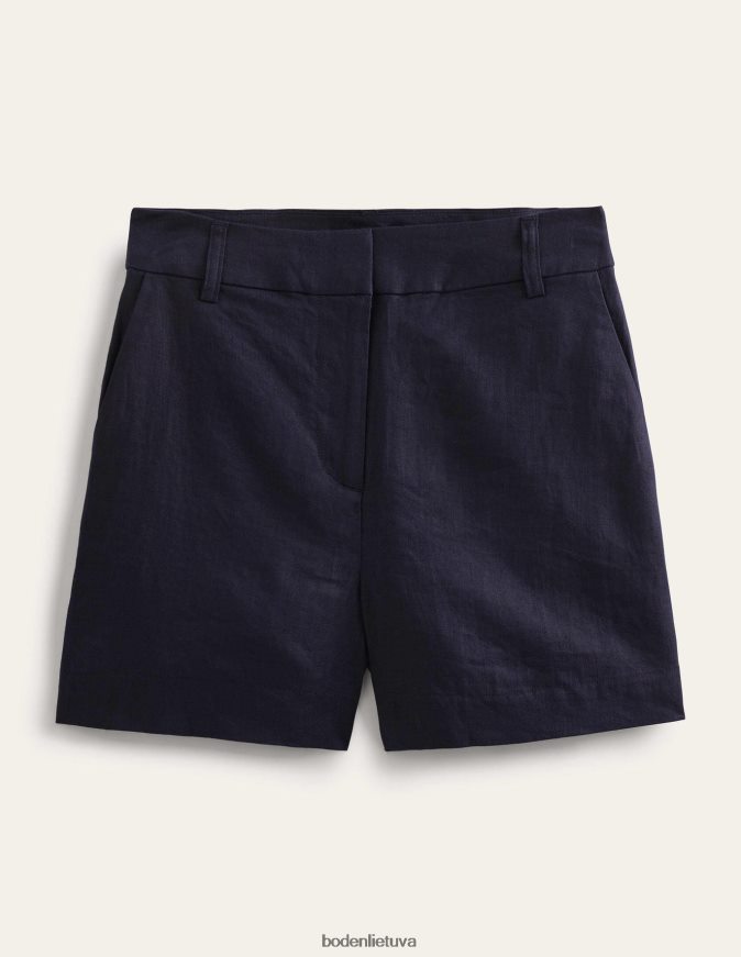 Mes meistriškai sukūrėme šiuos lininius šortus su aukštu paaukštinimu, kad jie būtų glostantys. Paslėptas priekinis užsegimas suteikia švarią, poliruotą apdailą, kuri yra paruošta stiliui su užsegtais baltais marškiniais arba marginta palaidine.
