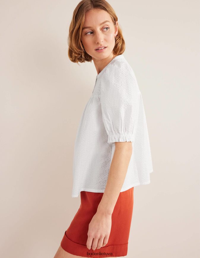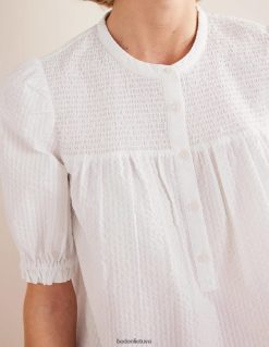 Smocked pečių plokštės įtvirtina plūduriuojančią šio medvilninio siurbtuko viršaus formą. jis įrėmintas trumpomis pūstomis rankovėmis su raukiniais apvadais ir atrama tiesiai virš klubų, kad būtų lengviau sluoksniuoti.