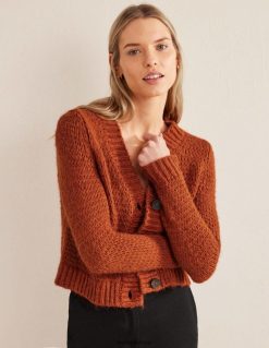 apranga lt Boden moterys pūkuotas atviro dygsnio megztinis rūdys 284XZZ2100