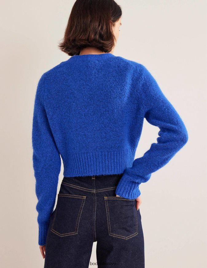 Susuktas iš prabangaus vilnos mišinio, šis sutrumpintas megztinis puikiai tinka prie visų jūsų kelnių aukštu juosmeniu, džinsų ir sijonų.